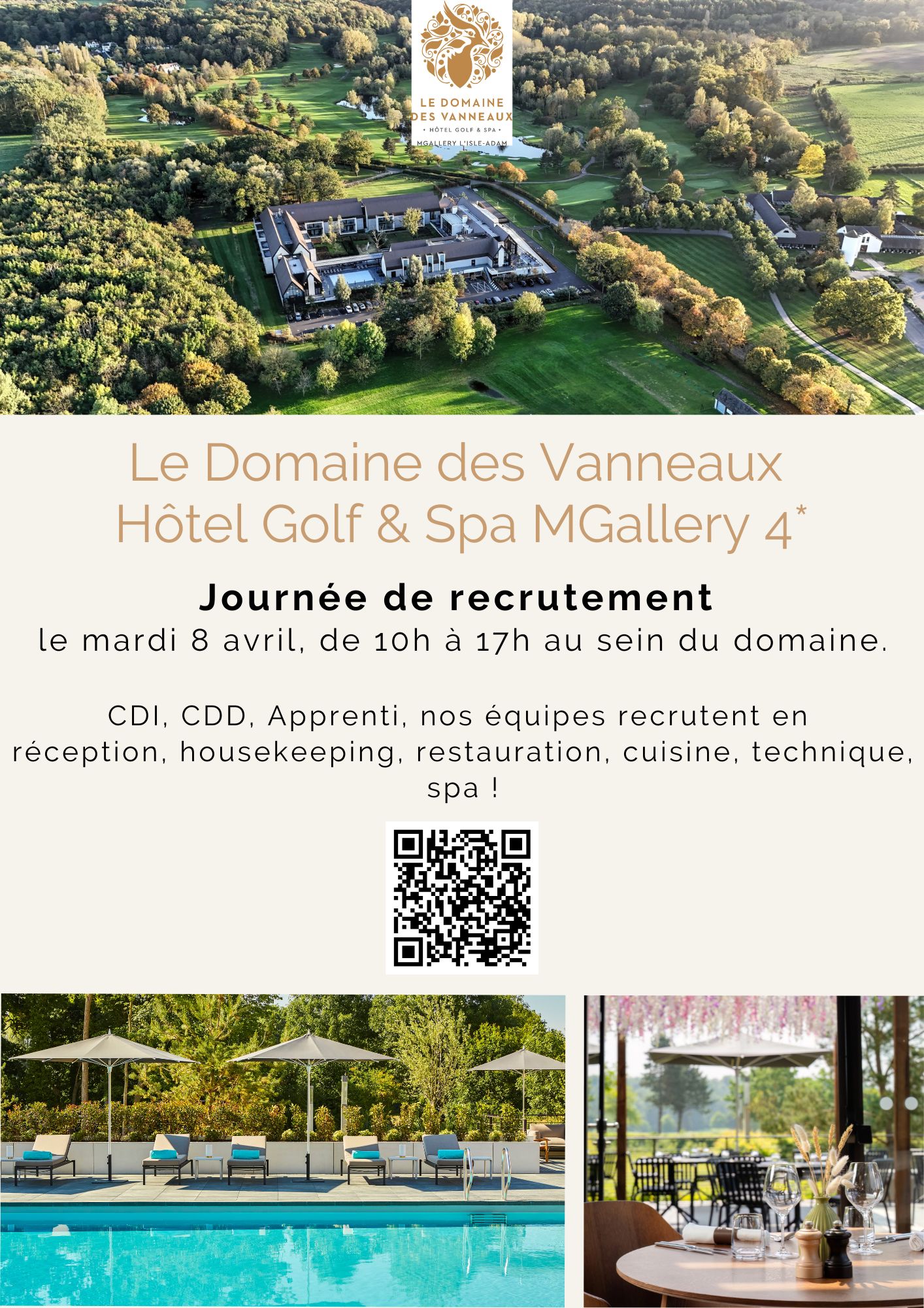 Journée de recrutement le mardi 8 avril 2026 de 10h00 à 17h00, au sein du Domaine des Vanneaux Hôtel